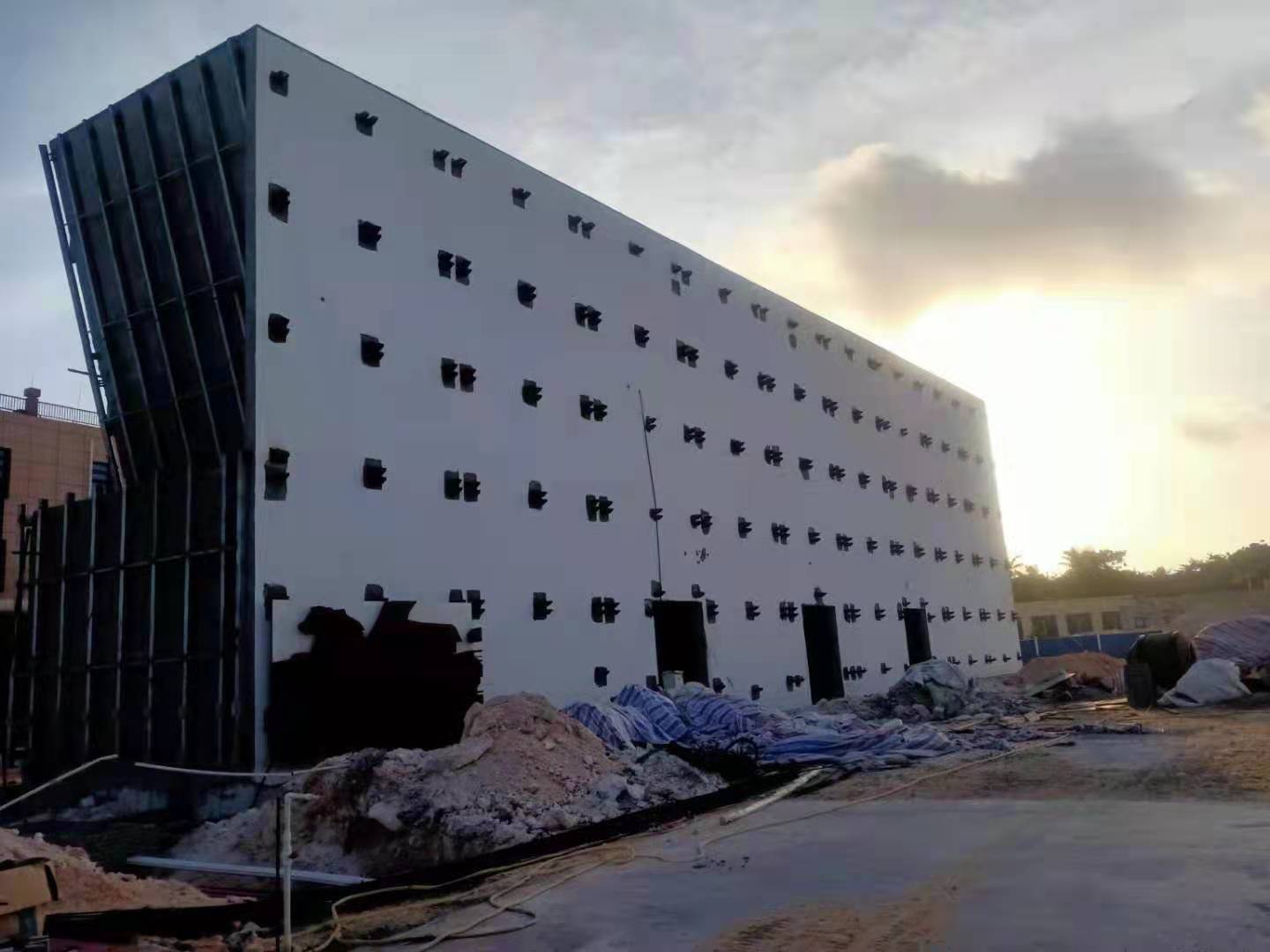此項目位于三沙市永興島,幕墻面積7200平方,由8公分耐候鋼板幕墻、3公分耐候鋼板、玻璃幕墻、鋁板幕墻、玻璃雨棚組成。針對特殊氣候,我司采用新材料、新工藝、新技術(shù)、新產(chǎn)品,用匠心精神,樹行業(yè)標桿。